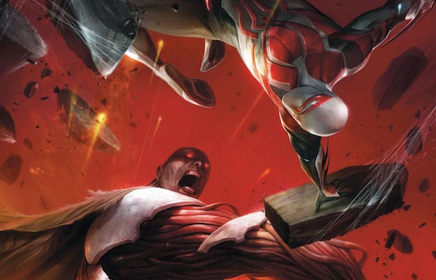 Peter David and Will Sliney kicked off Spider-Man 2099 (vol. 3) with one of the best debuts (so far) in the All-New, All-Different era. They quickly built a rich world, filled it with distinct characters, and were sure to raise the stakes to a fever pitch. That’s why I was pretty surprised, when Spider-Man 2099 #2 took the most important parts of that world and seemingly threw them all away! Instead, the issue chose to dig deeper into the psyche and motivations of the main character, Miguel O’Hara, without missing an opportunity to debut his new suit.