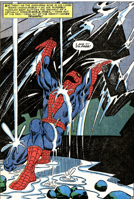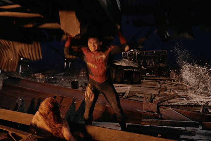 The final battle scene between Ock and Spider-Man also has a small visual nod to “The Final Chapter”, Amazing Spider-Man #33. In the comic, Peter is famously trapped in an underwater base belonging to Dr. Octopus, and, after deep soul searching, finds the strength within to free himself. In “Spider-Man 2”, the final battle takes place in a makeshift laboratory on an abandoned pier that begins to sink into the river. One of the walls collapses on MJ, only to have Spider-Man grab it at the last moment. After affirming that, yes, he can indeed find happiness in his life as Spider-Man, he finds the strength to push the wall off his back.